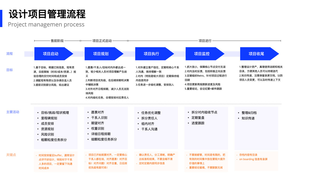 那我套用到設(shè)計的項目管理,大致會分為以下幾個階段:
