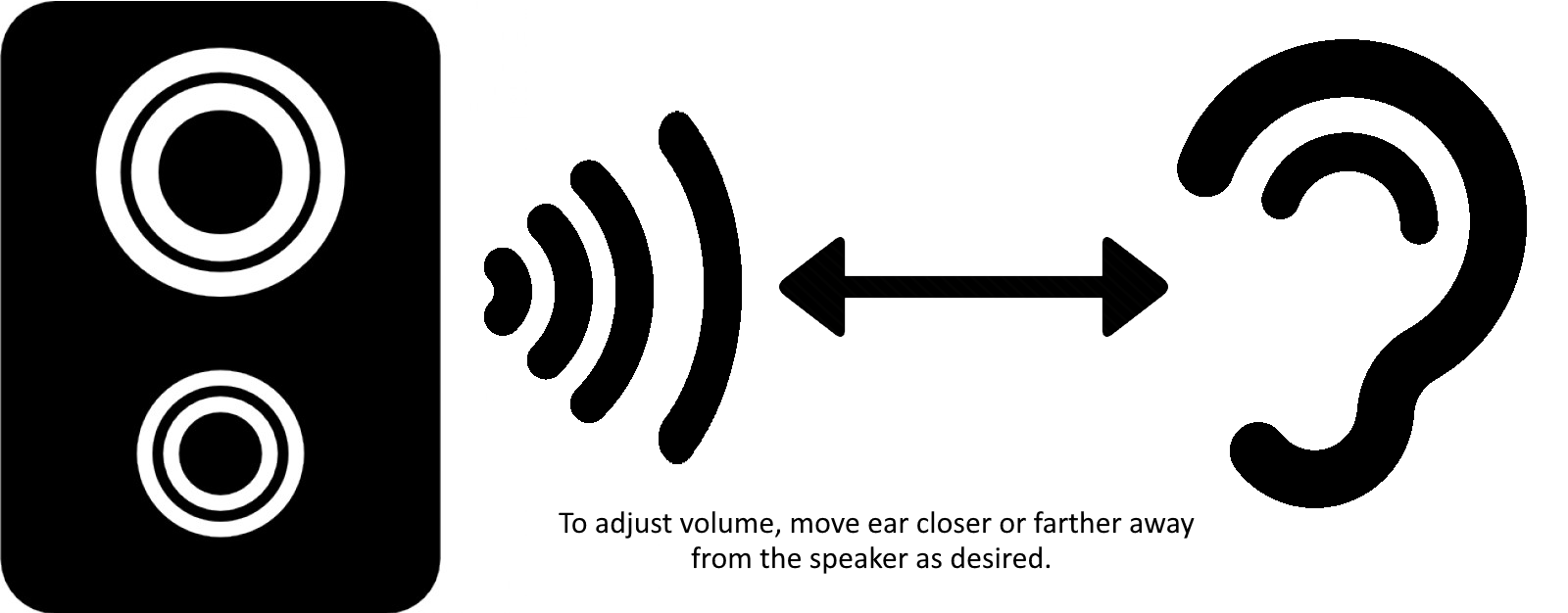 這張圖上寫(xiě)著,如果你想要調(diào)整音量大小的話(huà),方法很簡(jiǎn)單,就是把你的耳朵靠近音響一點(diǎn)點(diǎn)。