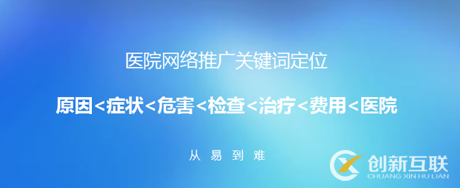 3.2.醫(yī)院網站推廣關鍵詞的選擇 3.2.1.一般原則 根據醫(yī)療行業(yè)的關鍵詞屬性不同,一般情況下,醫(yī)院類的關鍵詞競爭比較激烈;癥狀、原因類競爭最低;所以醫(yī)院網站推廣建議選病種關鍵詞,按照以下順序依次進行,全部做上去是最理想的情況,如果是一個新的醫(yī)院網站,建議從易到難進行推廣,此原則同時適用于百度競價和醫(yī)院網站SEO優(yōu)化:原因<癥狀<危害<檢查<治療<費用<醫(yī)院。