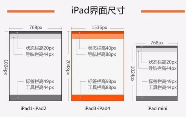 其中ipad1、ipad2、ipad mini均已淘汰,在制作網(wǎng)站布局時(shí)已基本可以不再考慮這些分辨率的產(chǎn)品了。