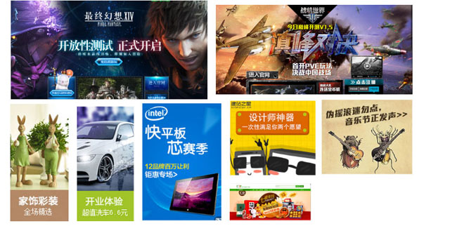 第一種就是大家經(jīng)常在各種大大小小的網(wǎng)站都能看到的廣告banner或者焦點(diǎn)圖,她們有大有小可長可短,但是他們共同的作用就是通過各種方式引導(dǎo)你去點(diǎn)擊。