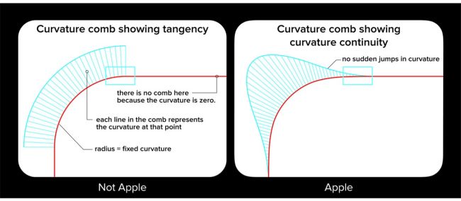 簡(jiǎn)單來(lái)說(shuō),Apple 采用的圓角曲率所生成的圖形,是更圓滑,無(wú)明顯切角的。這樣的圓角矩形在過(guò)渡上更平滑,且在視覺(jué)上的體驗(yàn)也更融洽。