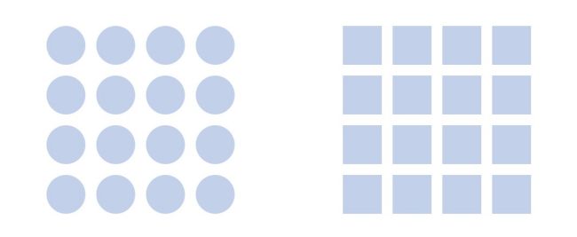 這里有個(gè)相通點(diǎn),即虛擬圖形依附于視覺(jué)而存在。人眼在接收?qǐng)D形信息時(shí),對(duì)圓角矩形的認(rèn)知會(huì)優(yōu)于直角矩形。因?yàn)槿搜劢Y(jié)構(gòu)中辨識(shí)力最強(qiáng)的部位,會(huì)優(yōu)先識(shí)別圖形的視覺(jué)中心。而圓角與直角矩形的區(qū)別就在于內(nèi)容速度的識(shí)別差異。