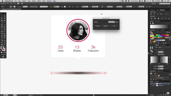 16、下一步是去效果>模糊>高斯模糊,并指定一個值為所需量的模糊。這里的目標(biāo)是創(chuàng)建一個“浮動陰影”的主要矩形,你可以調(diào)整相應(yīng)的模糊量。這個陰影的整體不透明度也可以在透明度調(diào)色板中進行調(diào)整。