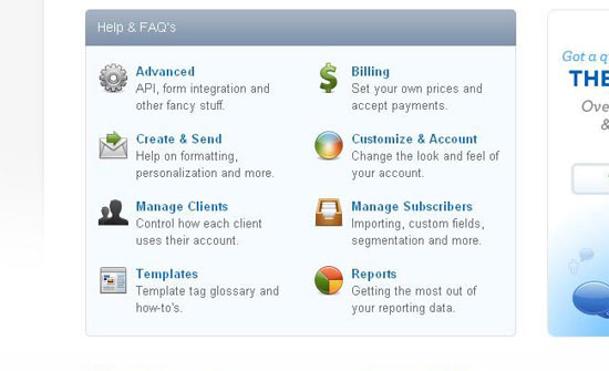 幫助用戶通過(guò)頁(yè)面指示,或回答他們的問(wèn)題。這些頁(yè)面的名稱應(yīng)該表明自己的內(nèi)容:“幫助”一般的幫助,“常見(jiàn)問(wèn)題解答”的常見(jiàn)問(wèn)題(通常是關(guān)于網(wǎng)站或其服務(wù)的不同方面)和“支持”,以解決特定的問(wèn)題,并提供故障排除咨詢。