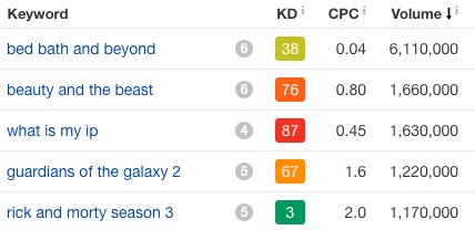 以下是一些長;關(guān)鍵詞的例子,其每月搜索量很大: