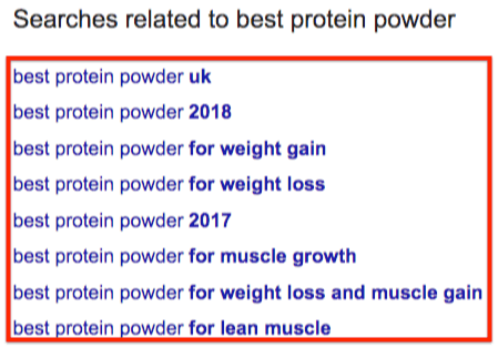 最簡單的方法之一就是選擇一個廣泛的話題,然后在Google上輸入它。然后,您將看到Google的相關(guān)搜索,如下圖所示,這些就是比較具體和相關(guān)聯(lián)的主題。
