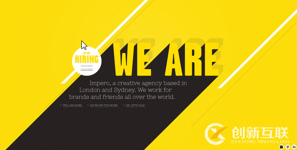 交互設(shè)計(jì)充滿整個(gè)網(wǎng)站,各種交互動(dòng)畫讓用戶忍不住有想點(diǎn)擊的想法。設(shè)計(jì)師利用兩組對(duì)角線(粗細(xì)交織)打造了視覺路徑。
