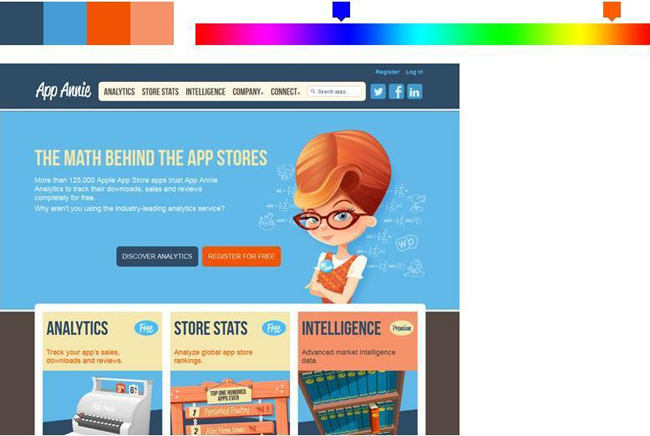 一個好的網(wǎng)頁設(shè)計會給用戶帶來記憶深刻,好用易用的體驗。從網(wǎng)頁設(shè)計的版式、信息層級、圖片、色彩等視覺方面的運用,直接影響到用戶對網(wǎng)站的最初感覺,而在這些內(nèi)容中,色彩的配色方案是至關(guān)重要的,網(wǎng)站整體的定位、風格調(diào)性都需要通過顏色,給用戶帶來感官上的刺激,從而產(chǎn)生共鳴。 從色彩研究的方向來看,色彩分為色調(diào)、飽和度、明度三方面,顏色的運用是純色之間的關(guān)系,以及它們混合在一起的效果。我們可以從當前眾多的網(wǎng)絡(luò)應(yīng)用中的實例,找到色彩運用的一些廣泛的色彩關(guān)系和配色方案,通過這些色彩的關(guān)系,可以作為實際工作學習中配色的指南。 單色:使用一種色調(diào)不同的飽和度與亮度