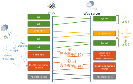 接下來看 HTTPS 的訪問過程,相比 HTTP 要復(fù)雜很多,在部分場(chǎng)景下,使用 HTTPS 訪問有可能增加 7 個(gè) RTT。如下圖: