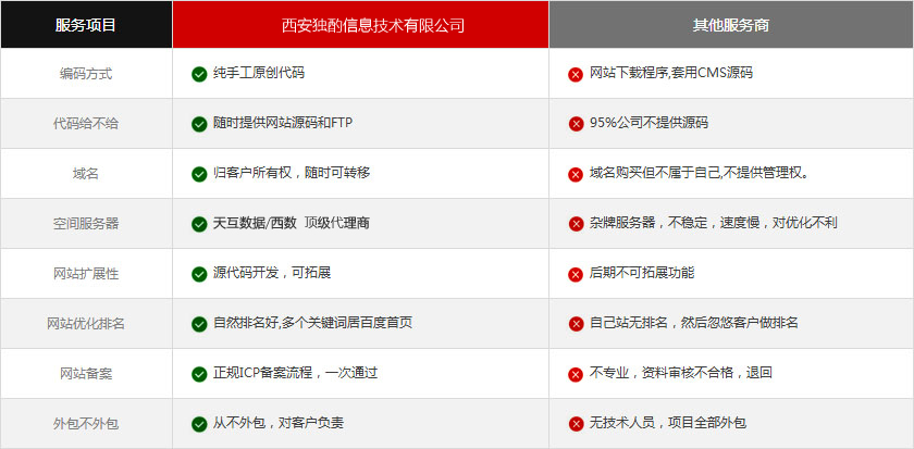 我司:純手工原創(chuàng)代碼 其他服務(wù)商:網(wǎng)站下載程序,套用CMS源碼