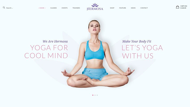 另一個很好的體育網(wǎng)站的例子是YYoga。本網(wǎng)站設(shè)計具有舒緩和鎮(zhèn)靜作用。主要使用的顏色是淺綠色和白色,作為背景使用。