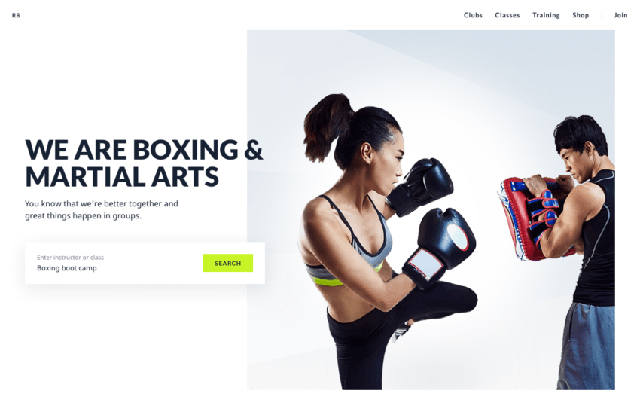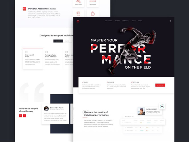 這個健身網(wǎng)站的目標是讓人們對健身感興趣,它有很高的客戶轉(zhuǎn)化率也就不足為奇了。只要看看這個設(shè)計,你就會有一種參與健身活動的沖動。
