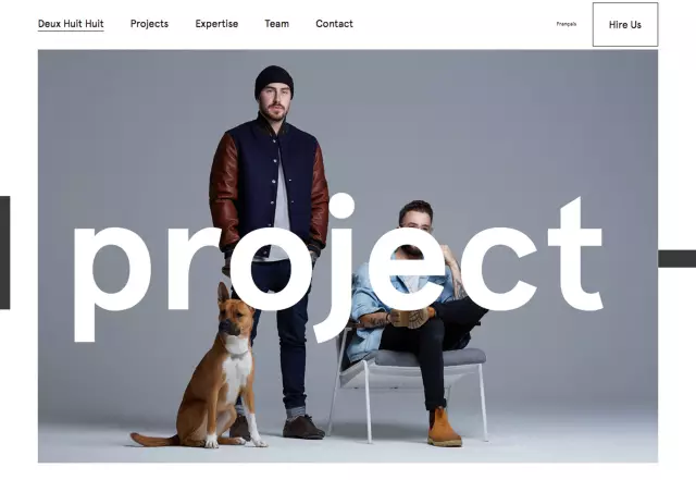 在諸多設(shè)計案例中,最值得注意的是Deux Huit Huit 。橫跨首頁主圖的文字的運動方式,當(dāng)它穿越圖片、背景的時候,是如何確保它的可讀性的。