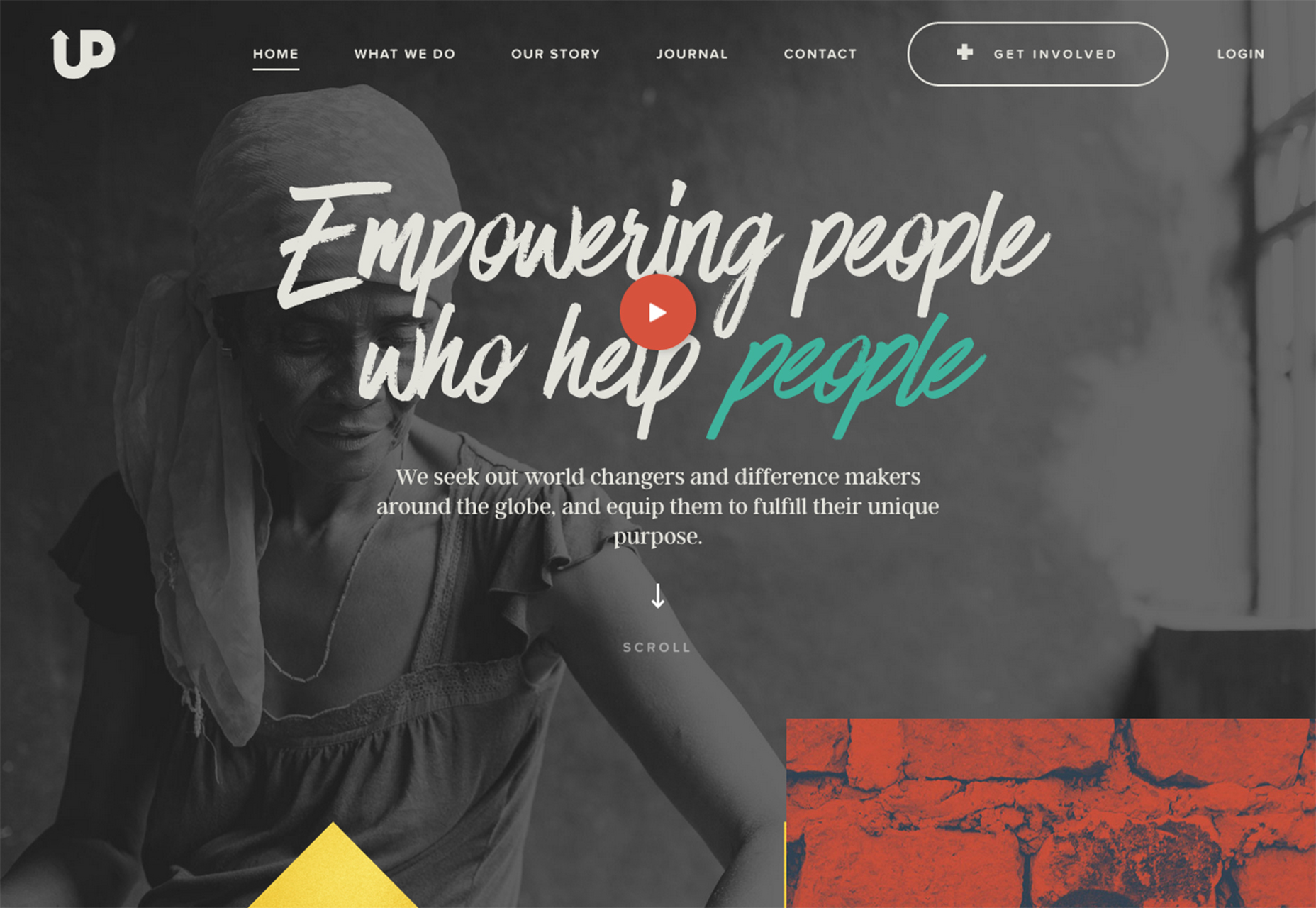 UpStream 在自己的首頁上就做到了這一點——雖然用戶可以通過滾動,到中間部位查看更多的內(nèi)容,但是只需快速的掃視開頭,中間和結(jié)尾三個部分,就能搞清楚這個故事的全貌。通過視覺設(shè)計搭配文字,就能搭建出一個故事的梗概。此外,屏幕上的“參與”按鈕也相當(dāng)?shù)摹罢T人”。