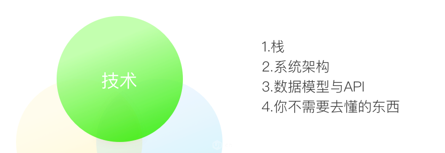 你也許早早就看過(guò)這張高度歸納,但又似乎有一點(diǎn)語(yǔ)焉不詳?shù)膱D。它大概描述了一名產(chǎn)品設(shè)計(jì)需要點(diǎn)的技能,里面包含用戶體驗(yàn)(UX)、技術(shù)(Tech)和商業(yè)/業(yè)務(wù)(Business)。