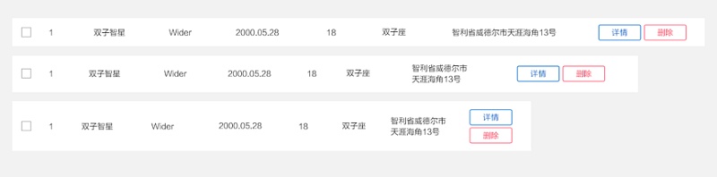 當(dāng)寬度拖到第三種情況,按鈕也出現(xiàn)了換行,那每一行的高度都應(yīng)該按照這個高度保持一致,即使有一些數(shù)據(jù)只有一個按鈕/地址并沒有出現(xiàn)換行,如圖: