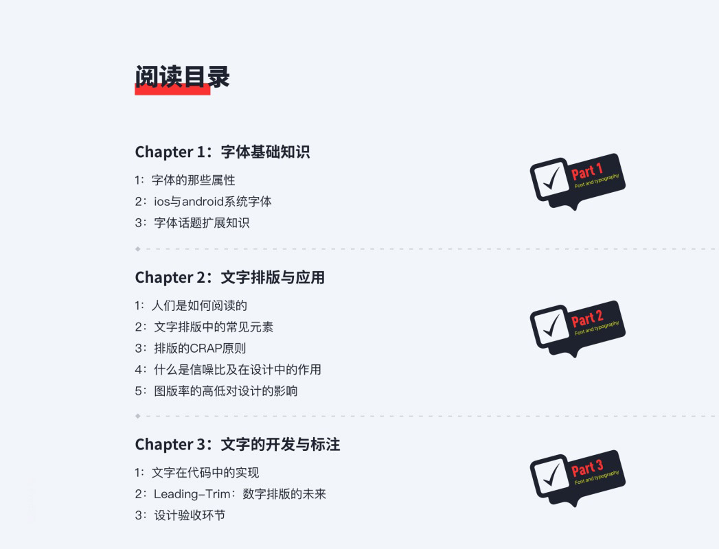前半部分從字體的最基本屬性(字族、字號、字重、大小寫等)說起,熟悉字體的那些特征,了解字體在界面中的作用,以及iOS與Android系統(tǒng)字體的使用規(guī)范。