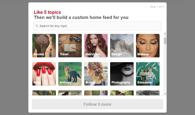 剛登錄網(wǎng)站,會(huì)讓你選擇5個(gè)你想看的領(lǐng)域,然后為你什么圖片推薦