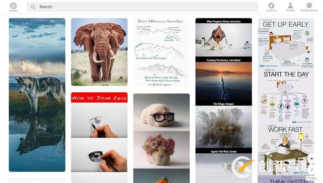 Pinterest網(wǎng)站采用的是瀑布流的形式來(lái)展現(xiàn)圖片內(nèi)容,即無(wú)需用戶翻頁(yè),新的圖片會(huì)不斷自動(dòng)加載在頁(yè)面底端,讓用戶不斷的發(fā)現(xiàn)新的圖片。