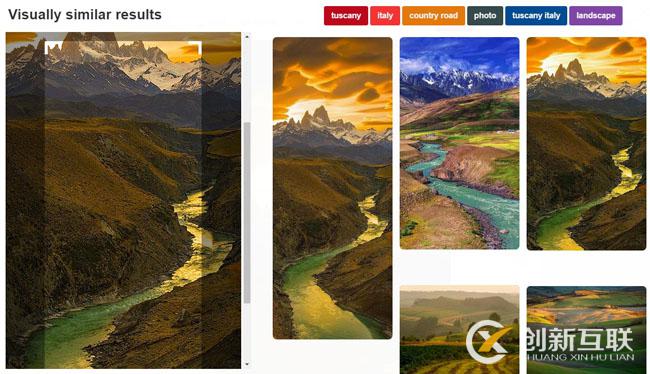 你流氓選好的自己感興趣的圖片后,點(diǎn)擊圖片右下角的更多,又會(huì)出現(xiàn)幾張類似的圖片,很漂亮,還有,當(dāng)你選中這張圖片的某一個(gè)位置時(shí),網(wǎng)站會(huì)根據(jù)相似性判斷展示幾張圖片,就跟上面這張圖一樣。