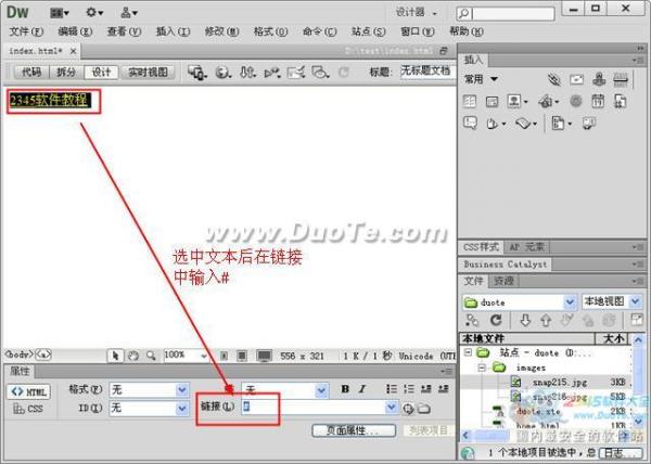 首先選中需要添加空鏈接的文本,在軟件下方的屬性窗口鏈接項中輸入“#”或者javascript:void(0),這樣空鏈接就創(chuàng)建好了。