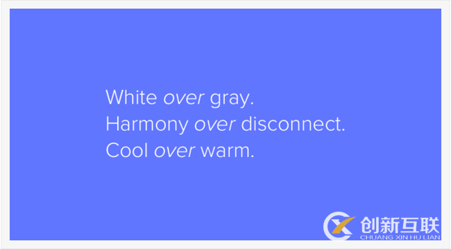 在開(kāi)始著手挑選配色之前,我常常會(huì)翻看Dustin Senos關(guān)于設(shè)計(jì)原則的短文。他在文章中,闡述設(shè)計(jì)原則的方式非常有意思,干練而有趣,“方向優(yōu)于選擇”,“合適優(yōu)于一致”,“發(fā)展性優(yōu)于總結(jié)”。其實(shí)如果借用這種句式來(lái)總結(jié)配色也不錯(cuò):“白色優(yōu)于灰色”,“和諧優(yōu)于錯(cuò)位”,“沉靜優(yōu)于熱烈”。當(dāng)我在工作的時(shí)候,我會(huì)時(shí)刻謹(jǐn)記這些配色策略,它們更像是一種感覺(jué)上的規(guī)范,就像用戶角色引導(dǎo)UX設(shè)計(jì)師來(lái)設(shè)計(jì)體驗(yàn)一樣。