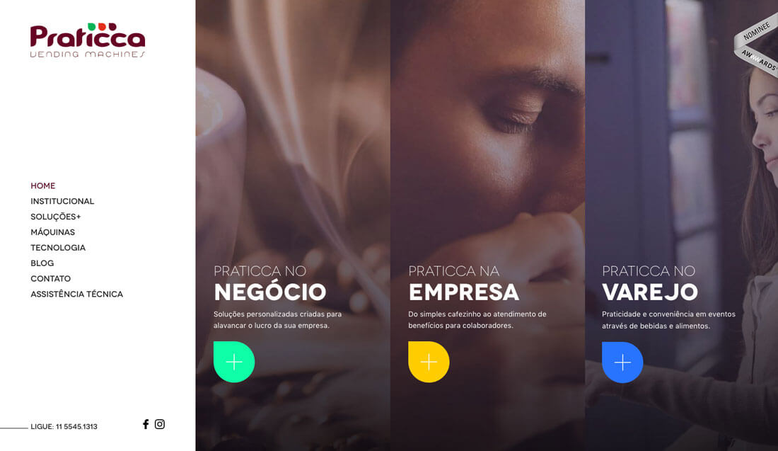Praticca Vending Machines 這個(gè)網(wǎng)站就采用了超大的圖標(biāo)來告知用戶,可以點(diǎn)擊獲取更多的信息。包含+號(hào)的彩色圖標(biāo)沿用了相同的樣式,并且為不同的區(qū)塊搭配了不同的色彩,引導(dǎo)用戶去點(diǎn)擊。