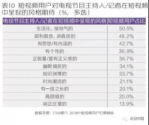另外,節(jié)目主持人/記者是電視媒體入場短視頻的重要資源。僅38.2%短視頻用戶不同程度地表示對短視頻中出現(xiàn)的主持人/記者感興趣,借助名人效應(yīng)提升電視媒體的傳播力仍有待探索。網(wǎng)感、風(fēng)格人設(shè)是電視主持人/記者短視頻的加分項(xiàng)。短視頻用戶期待親民的、率真的、有思想有內(nèi)涵的主持人形象。