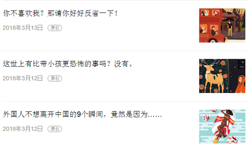 在這個(gè)浮躁的年代,漫畫(huà)風(fēng)格的配圖其實(shí)為許多人所喜愛(ài),給人感覺(jué)有些清新,還有點(diǎn)點(diǎn)痞,算是滿足大家對(duì)于個(gè)性的追求欲望,說(shuō)上去好像還挺高大上,其實(shí)說(shuō)白了就是很順現(xiàn)在年輕群體的眼。(下面截圖是咪蒙公眾號(hào)的配圖)