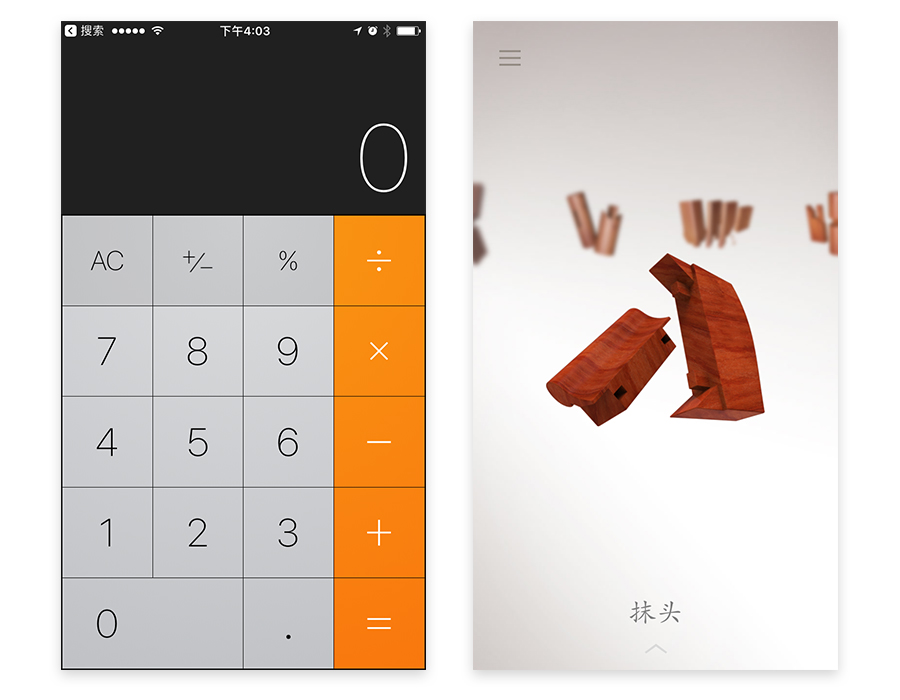 常見于系統(tǒng)自帶的工具類APP,像經(jīng)常使用的鬧鐘、日歷、計算器等等;一些簡單的第三方APP:樂流,榫卯等。