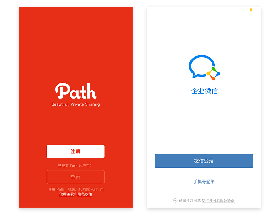 早期互聯(lián)網(wǎng)產(chǎn)品多使用郵箱或用戶名登錄,這是PC時代人圍繞設(shè)備走的特性決定的,而現(xiàn)在是移動互聯(lián)網(wǎng)時代,是設(shè)備圍繞人走,手機號自然成了主流的注冊登錄方式。而現(xiàn)在,如果你的產(chǎn)品沒有自建賬號系統(tǒng)的需求,請直接使用第三方登錄的方式,其快捷簡單的操作,無疑是成本最小的注冊登錄方式。