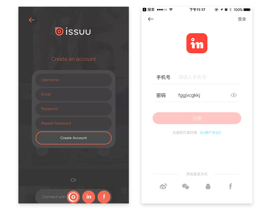平時收藏的一些視覺不錯的注冊登錄頁面: