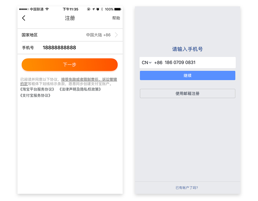 加上手機號碼的實名制、全球通業(yè)務(wù)的普及,使得手機號碼也具有了唯一標(biāo)示性。而且在移動互聯(lián)網(wǎng)時代,用手機號碼作為登錄ID,并用短信驗證碼的形式來驗證ID,這些操作流程都基于手機端,特別方便快捷。所以手機號碼逐漸取代郵箱成為APP注冊登錄的主流方式。