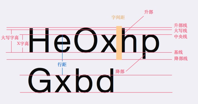了解字體設(shè)計(jì)的基礎(chǔ)術(shù)語(yǔ)非常重要,這些術(shù)語(yǔ)在介紹字體設(shè)計(jì)的相關(guān)文章中經(jīng)常出現(xiàn)。比如 x-height(X字高)指的是從字母的基準(zhǔn)線開始往上到最矮字母的頂端的距離,當(dāng)X字高的比例相對(duì)大一些的話就能增加易讀性。