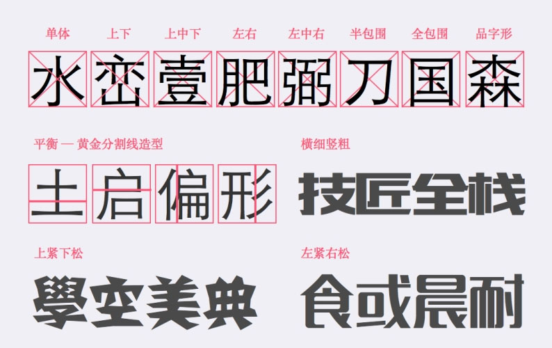 在大多數(shù)情況下我們都選擇使用系統(tǒng)自帶的字體,比如微軟雅黑、宋體、黑體等來(lái)定義標(biāo)題和內(nèi)容,但有時(shí),我們?cè)谧鯨ogo,banner設(shè)計(jì)時(shí)也需要通過對(duì)字體進(jìn)行改造,來(lái)達(dá)到更加理想的效果。這時(shí)我們就需要掌握漢字的字形結(jié)構(gòu)以及一些最基本的設(shè)計(jì)原則。