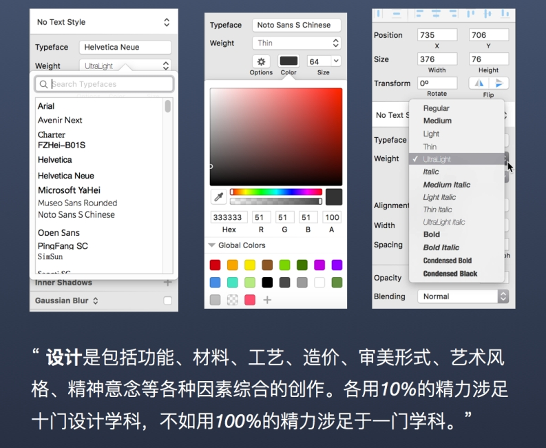 現(xiàn)代字體都有多種字重設(shè)置:Regular,Light,Thin和Ultralight