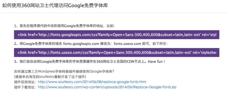 如果你需要在你的網(wǎng)站中直接使用Google Web Fonts,你可以選擇360的代理來(lái)訪問Google的免費(fèi)字體庫(kù)。下面是使用說明,非常簡(jiǎn)單。