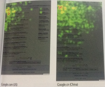 成都網(wǎng)站建設(shè)--創(chuàng)新互聯(lián)小編發(fā)的是上圖英文google.com 與中文 google.cn的對(duì)比。成都網(wǎng)站建設(shè)--創(chuàng)新互聯(lián)小編從這里可以明顯看出,想對(duì)于英文google上比較規(guī)則的F型分布,中文用戶google.cn上的瀏覽更具隨機(jī)性。雖然大體上還是呈現(xiàn)最上面的頁面關(guān)注的比較多,越往下月少,但是中文用戶并不像英文用戶那樣垂直向下瀏覽結(jié)果,看到感興趣的結(jié)果側(cè)向右方移動(dòng)目光,閱讀頁面標(biāo)題或說明。中文用戶的目光更多的像是橫向隨機(jī)跳動(dòng),點(diǎn)擊也是比較隨機(jī)的,目光和點(diǎn)擊分布都更廣。