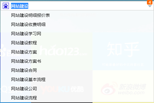 網(wǎng)站建設,在搜索的時候下拉框里面就會出現(xiàn)如下圖所示: