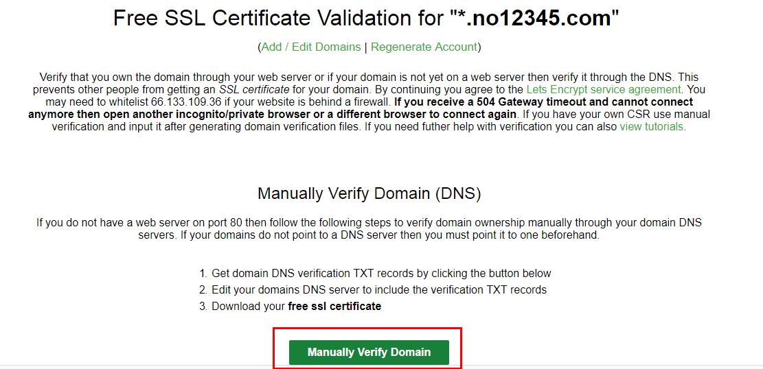 3、點擊Manually Verify Domain按鈕。如圖: