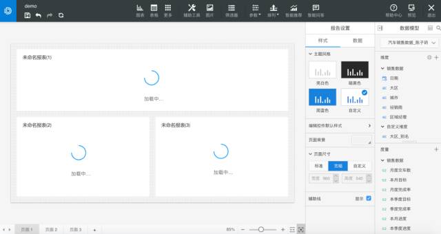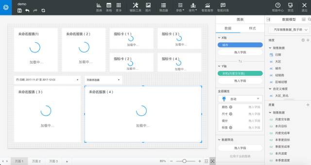 這是一個曾真實存在過的業(yè)務場景圖,儀表盤中的圖表排版是用戶自行構建的。大部分儀表盤中的圖表都不少于 5 張,且大小不一。每張圖表中的數(shù)據(jù)來源于不同的數(shù)據(jù)模型,模型大小會影響加載速度,所以加載速度有快有慢,再加上網(wǎng)速等一些客觀原因,有時就是會出現(xiàn)參差不齊一片loading的場景,而且出現(xiàn)的頻率還不低。