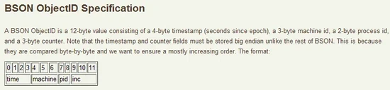 ObjectId如果用字符串表示則有24個字符,但實際上它是由一組十六進(jìn)制的字符構(gòu)成,每個字節(jié)兩位的十六進(jìn)制數(shù)字,總共用了12字節(jié)的存儲空間。