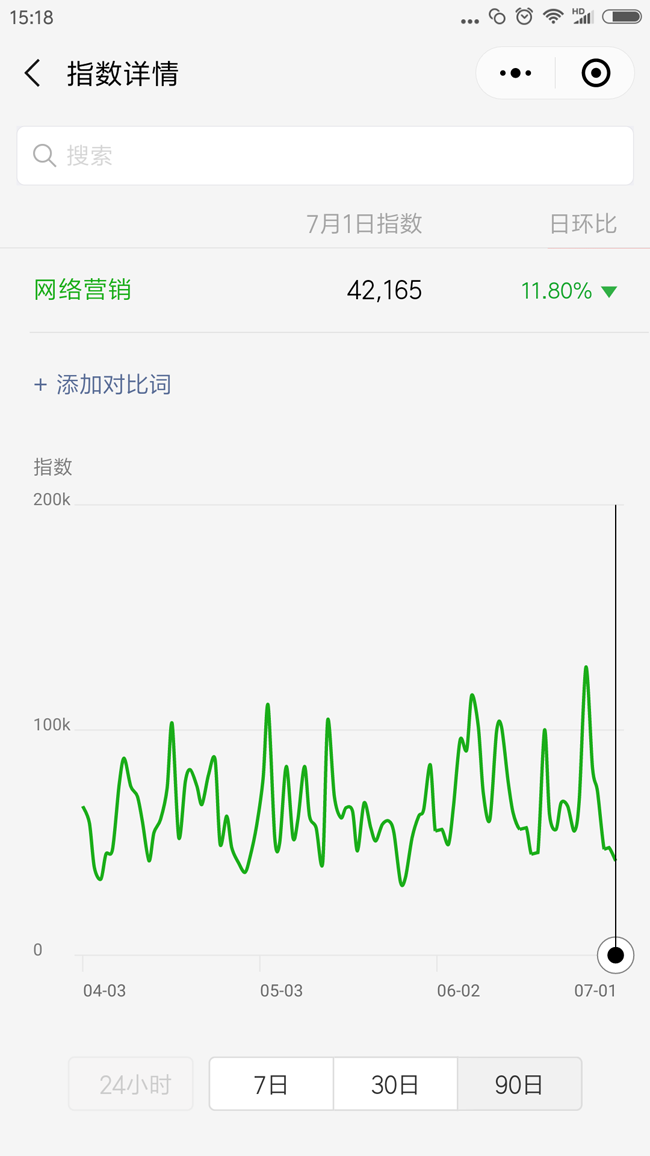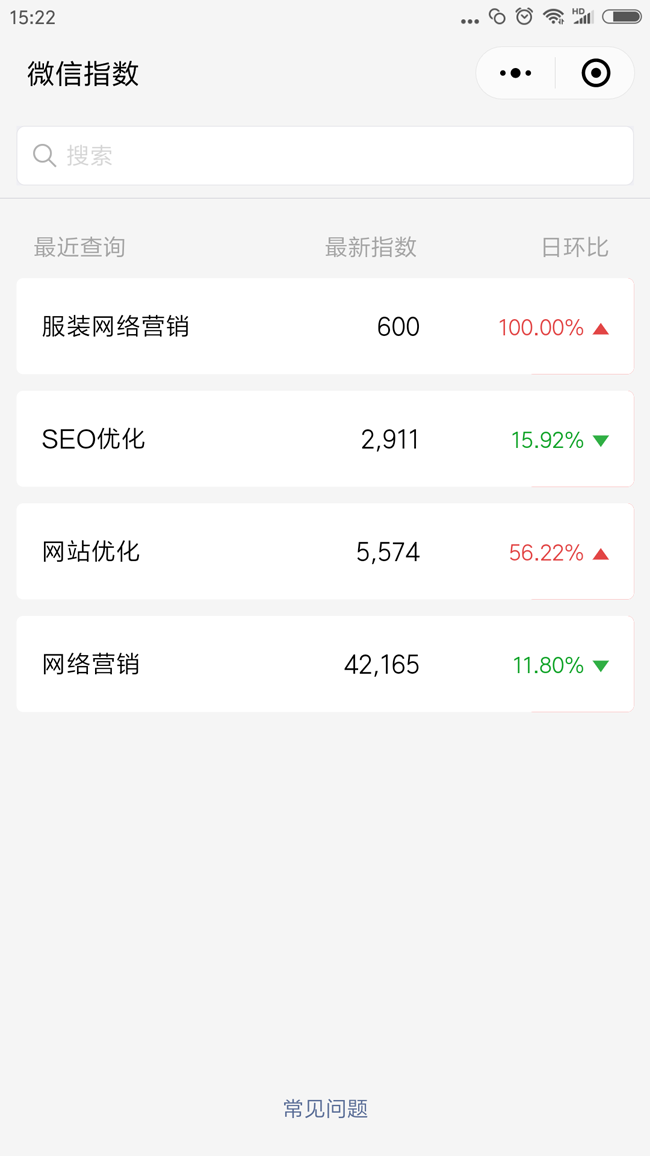 挑選關(guān)鍵詞:可選擇地域詞、品牌詞、人群詞、產(chǎn)品詞、行業(yè)詞,且與主營(yíng)業(yè)務(wù)相關(guān)。關(guān)鍵詞應(yīng)盡量選擇短詞、熱詞,關(guān)鍵詞熱度建議通過(guò)小程序“微信指數(shù)”查詢。微信官方提供關(guān)鍵詞指數(shù)數(shù)據(jù),并支持關(guān)鍵詞對(duì)比。
