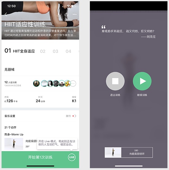 △ 運(yùn)動(dòng)APP KEEP 的頁面中總有一個(gè)按鈕是突出的