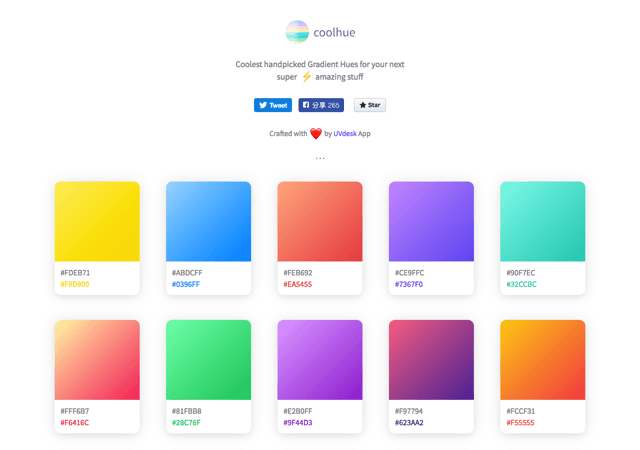 相比其他配色網站,uiGradients質量好的同時,使用體驗也更加人性化,實用性非常高哦。