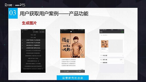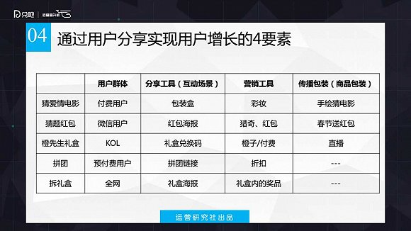 其次是分享,利用用戶。你了解完用戶之后你要利用用戶,利用他達(dá)成我們的一些運(yùn)營(yíng)目的。利用的過(guò)程就是通過(guò)用戶做一些事情,實(shí)現(xiàn)更多用戶的增長(zhǎng)或者其他目的。