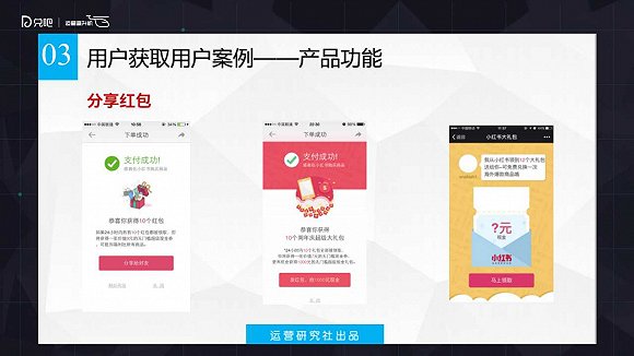 第二個(gè)產(chǎn)品層面的案例是分享紅包,分享紅包這個(gè)大家已經(jīng)玩爛了。而分享紅包里面套路最深的是小紅書。它引導(dǎo)你分享,分享的套路跟大家一樣,通過(guò)獎(jiǎng)勵(lì)引導(dǎo)你分享;它套路最深的是對(duì)于看到這個(gè)紅包頁(yè)面的新用戶,一個(gè)新用戶看到你分享給他的紅包連接,他打開之后,他不知道自己領(lǐng)多少錢,只有當(dāng)他輸入他的電話號(hào)碼,完成注冊(cè)之后,他才能知道你分享給我的紅包里面藏了是多少錢,當(dāng)他玩兒到這一步的時(shí)候,小紅書已經(jīng)把他變成自己用戶了。