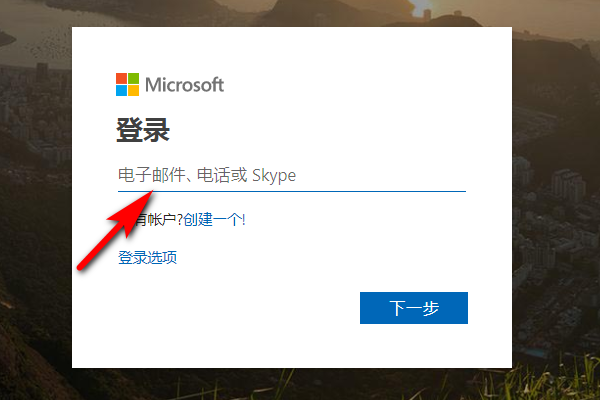 3、點(diǎn)擊了登錄之后就會(huì)彈出一個(gè)登錄界面,在這個(gè)登錄界面里將賬號(hào)輸入,點(diǎn)擊下一步就可以了,這樣就能登錄了。