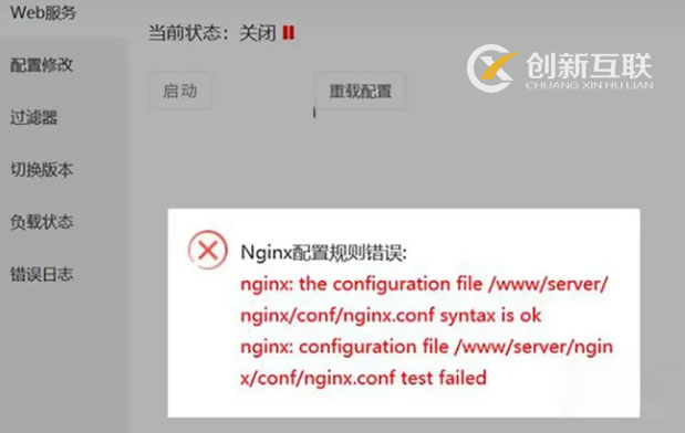 bt寶塔面板nginx報錯 nginx: configuration file /www/server/nginx/conf/nginx.conf test failed 語法檢查通過單測試配置文件失敗